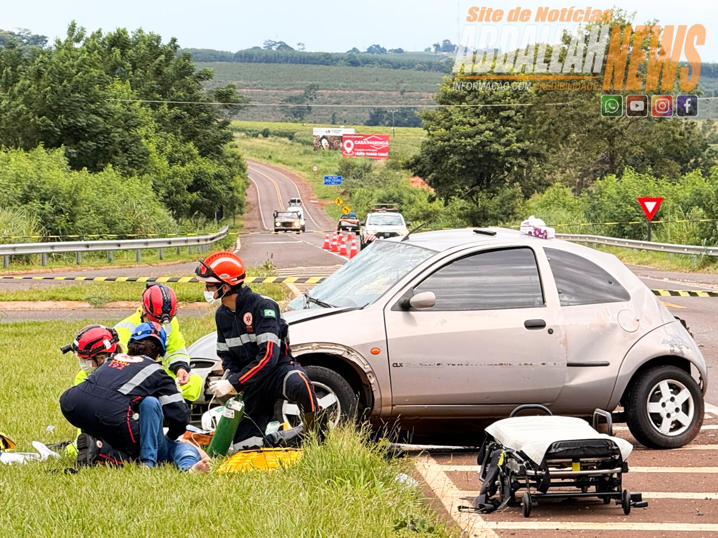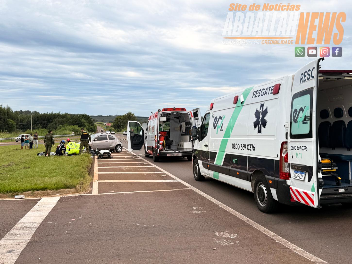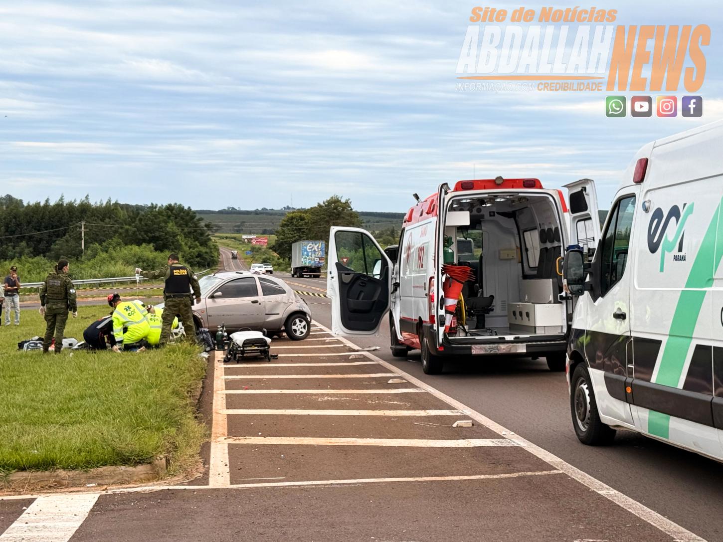 No Ford Ka estavam dois ocupantes, uma mulher foi socorrida em estado grave e encaminhada para atendimento médico pela equipe aeromédica, acionada a partir de Umuarama, o outro ocupante ainda não identificado oficialmente, morreu no local.