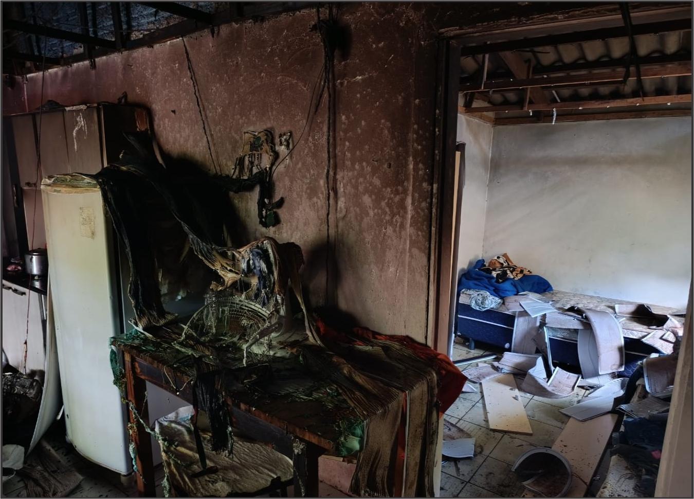Por se tratar de uma casa conjugada, houve risco de propagação para o imóvel vizinho, parte da estrutura chegou a ser afetada, com registro de danos como derretimento de forro e comprometimento do teto em um dos cômodos.