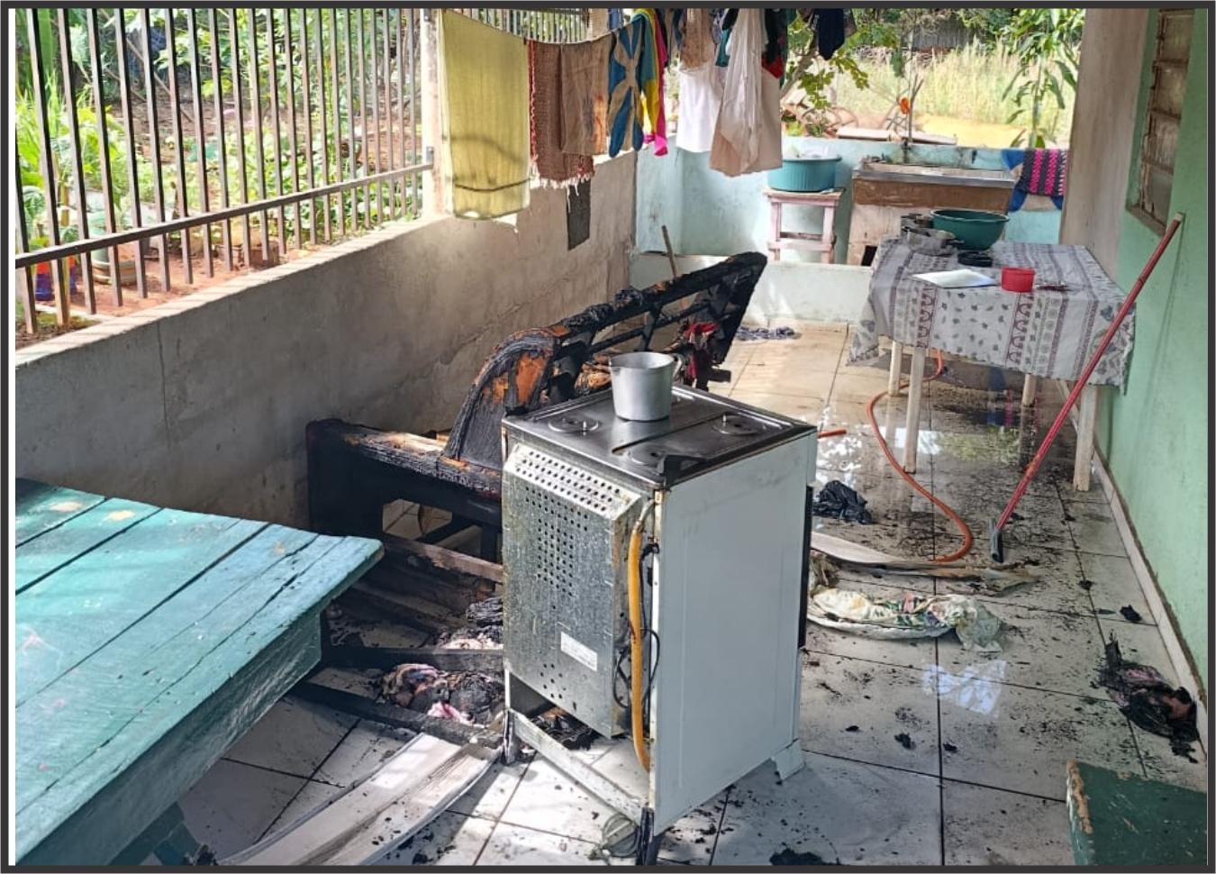 Quando as equipes chegaram ao local, o incêndio já havia sido controlado por vizinhos com o uso de baldes de água, evitando que as chamas se alastrassem ainda mais.